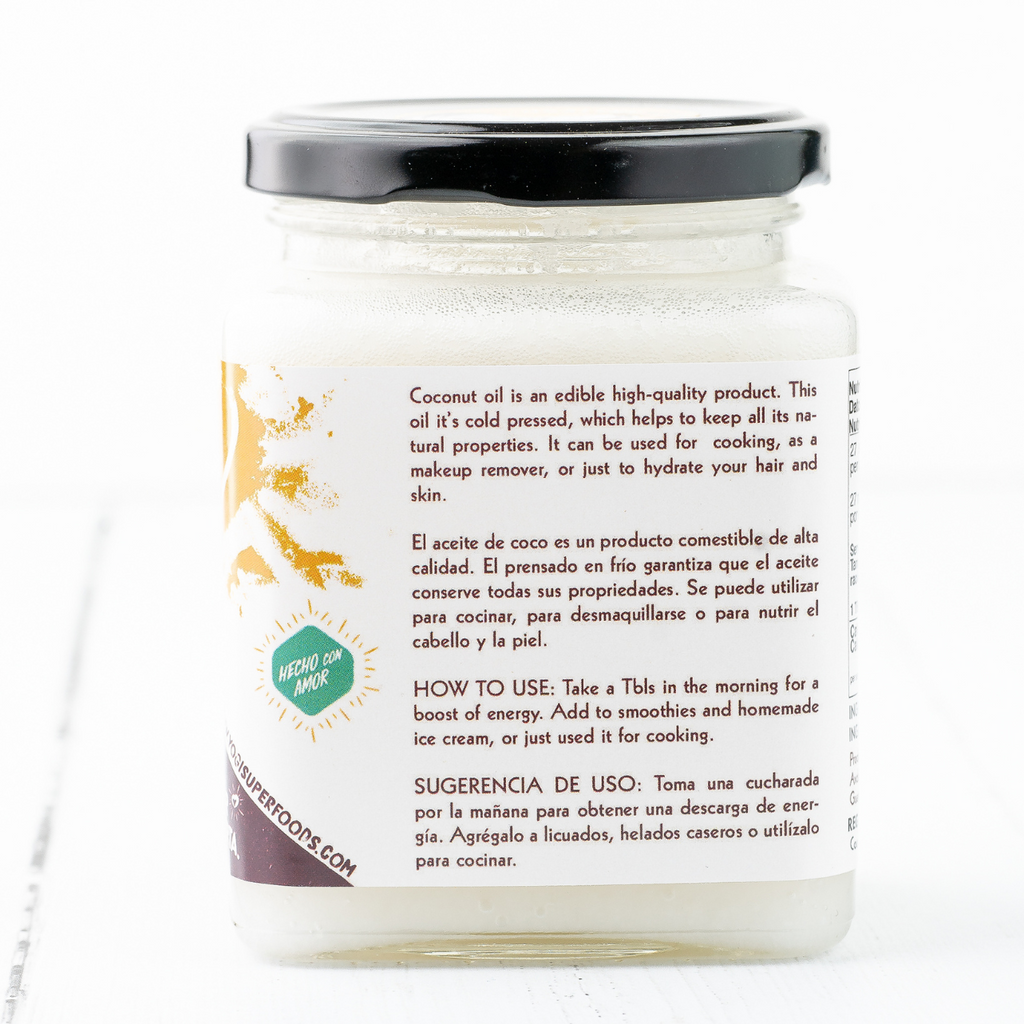 Ingredientes: Aceite orgánico de coco prensado en frio.