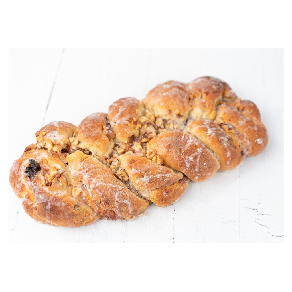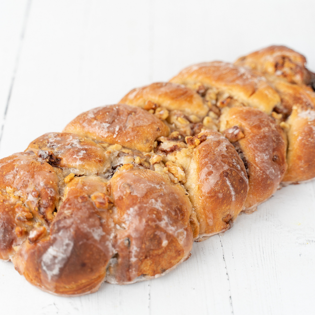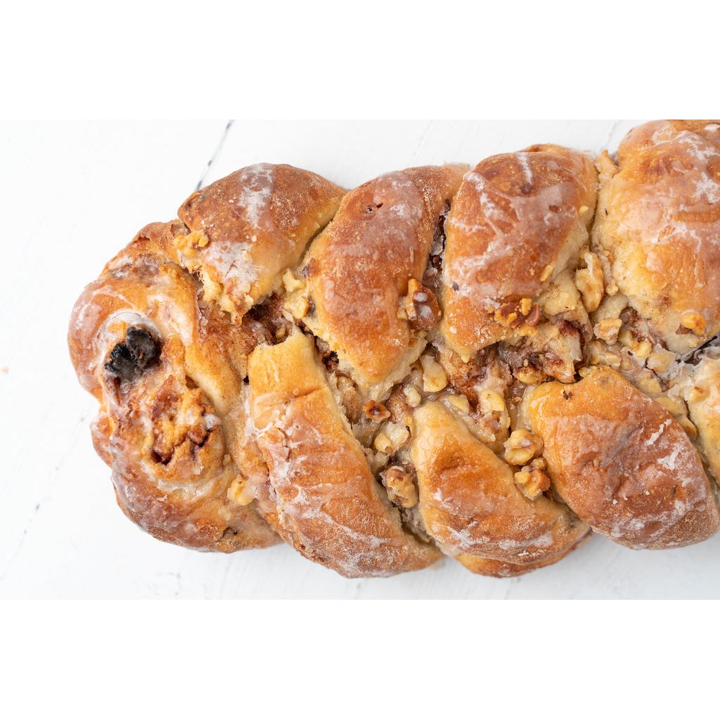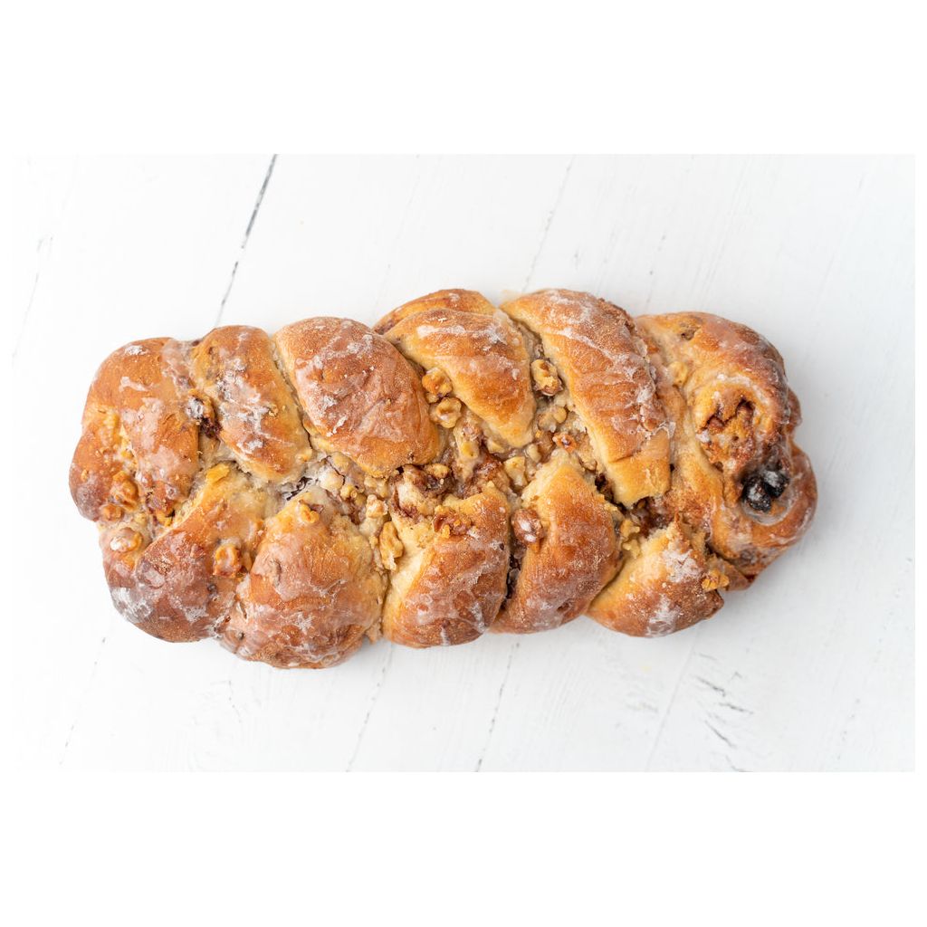 Nuestra trenza combina la calidez de la canela y la riqueza de la macadamia en un pan suave, aromático y perfecto para las celebraciones. ¡Imprescindible en tu mesa esta Navidad! Hecha con pan de masa madre.